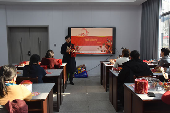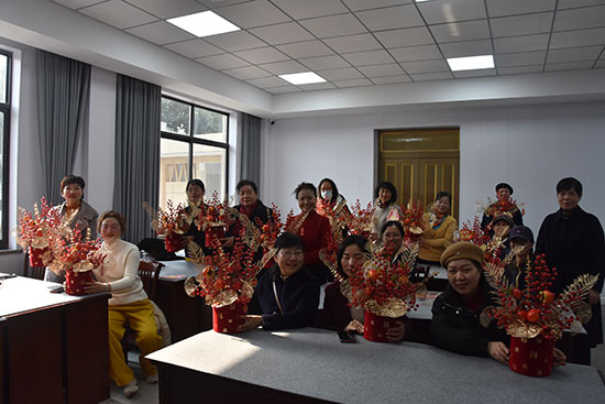 近日,新碶街道社区老年大学举办了一场别开生面的年宵花制作活动,邀请了老年大学各班级班长以及新碶成校教师参加本次活动。此次活动不仅丰富了学员们的精神文化生活,还促进了彼此之间的交流与互动,营造了浓厚的节日氛围。