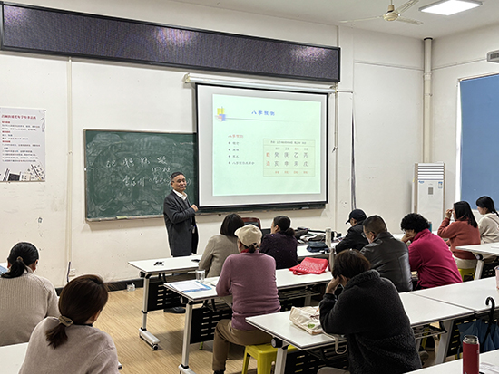 在开班仪式上,安吉县著名易经专家厉和民老师登上讲台,为学员们带来了精彩的第一课。厉和民老师以其深厚的易经功底和丰富的教学经验,在课堂上深入浅出地讲解易经的奥妙,赢得了学员们的阵阵掌声和一致好评。