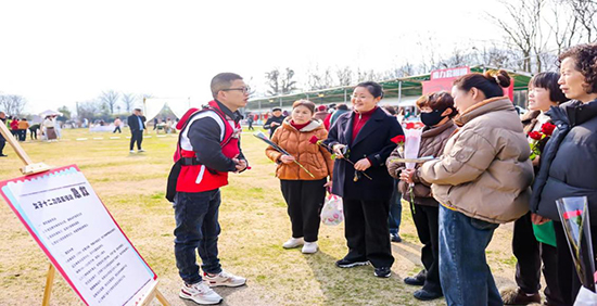 在文明中心广场,一场趣味盎然的老年妇女套圈活动吸引众人目光。五彩的套圈在空中划过弧线,老姐妹们个个精神抖擞,眼睛紧盯着目标奖品,现场欢笑声此起彼伏。王奶奶身手不凡,连续套中几个小礼品,笑得合不拢嘴:“这活动有意思,感觉自己都年轻了好几岁,还能和老街坊们一起乐呵。”大家在轻松氛围里重拾童趣,拉近邻里情谊。