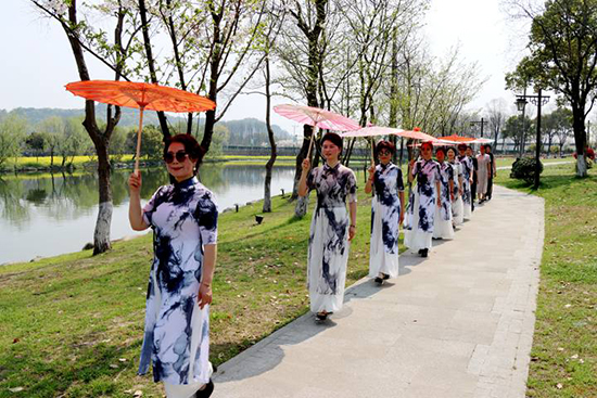 阳春三月、鲜花烂漫,3月26日,浙江老年开放大学柯桥学院摄影与形体走秀两个班的学员们齐聚鉴湖游步道开展户外教学活动,共绘光影与优雅的美好邂逅。