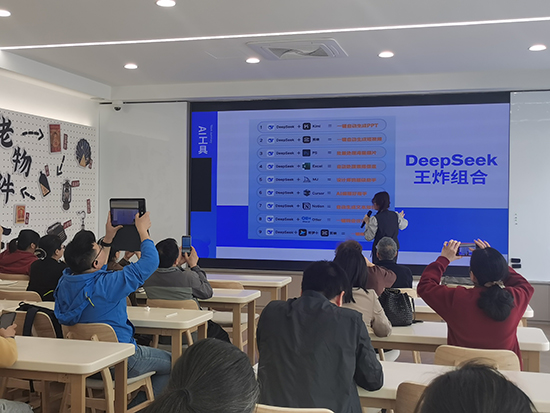 课程伊始,丹丹老师向学员们介绍DeepSeek、豆包、通义千问等AI智能体的基本原理和主要功能,让大家了解与AI“打交道”的入门知识。“AI的应用场景很广,掌握指令技巧能让搜索结果更加高效精准。”在探讨如何运用人工智能应对日常问题环节,丹丹老师分享《20例DeepSeek基础指令》《DeepSeek王炸组合》等干货,并通过实操演示指导学员们如何利用AI获取新闻摘要、养生科普、旅游攻略、生活妙招等。学员们学习热情高涨,认真记录操作要点,踊跃参与互动环节,课堂气氛格外火热又融洽。