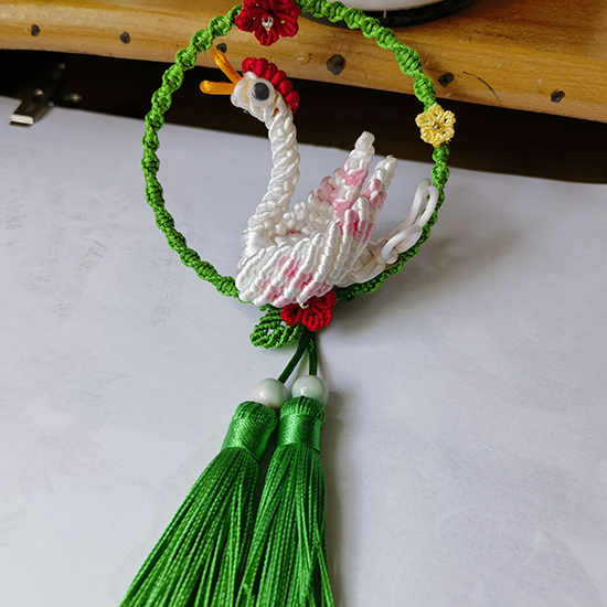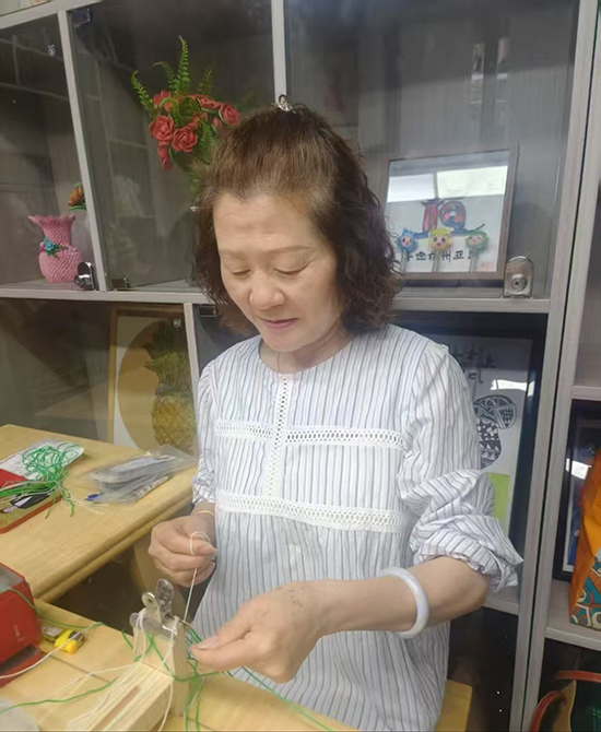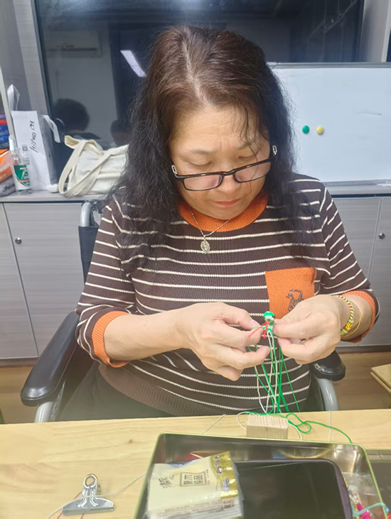 今年65岁的王阿姨举着新编成的荷花挂饰笑言:“以前总觉得编织是年轻人的爱好,没想到自己学起来也上瘾!现在每天在家琢磨不同的花样,连老花镜都成了‘标配’。”结艺课程自开设以来,吸引了老人参与,不少学员从零基础起步,如今已能独立完成复杂的绳结设计。除了实用的手链戒指,富有江南特色的荷花、象征吉祥的小蛇等创意作品,更成为老人们馈赠亲友的“心意好礼”,让传统手工艺在新时代焕发出温暖的生活气息。