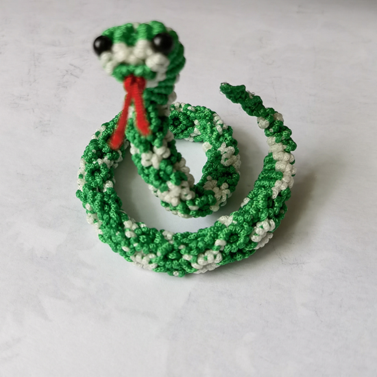 采荷街道社区学校活动室里,一场别开生面的结艺编织课正在进行,兴趣相投的老年人围坐一起结社而学。先将线对折打金刚结,留出合适的长度后穿入转运珠,再调整绳结的松紧……,社区大先生王老师耐心讲解着编织技巧,老人们一边认真聆听,一边反复练习,遇到复杂步骤便互相交流探讨,在老师的指导下,手中的线逐渐勾勒出精致的手链、戒指,以及惟妙惟肖的小蛇挂饰等手工艺品。