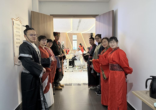 活动伊始,礼仪老师身着汉服,带领长者们完成“祭酒礼”汉风祈福仪式。82岁的张奶奶捧着米酒感叹:“第一次知道米酒在汉代叫'醴',这个‘共饮长寿酒’的仪式特别有讲究,既庄重又温暖。”据“慧龄空间”负责人介绍,为筹备此次活动,社区特别邀请非遗传承人开设了“汉文化研习课”,让老人们了解汉代的服饰礼仪和饮食文化等等。