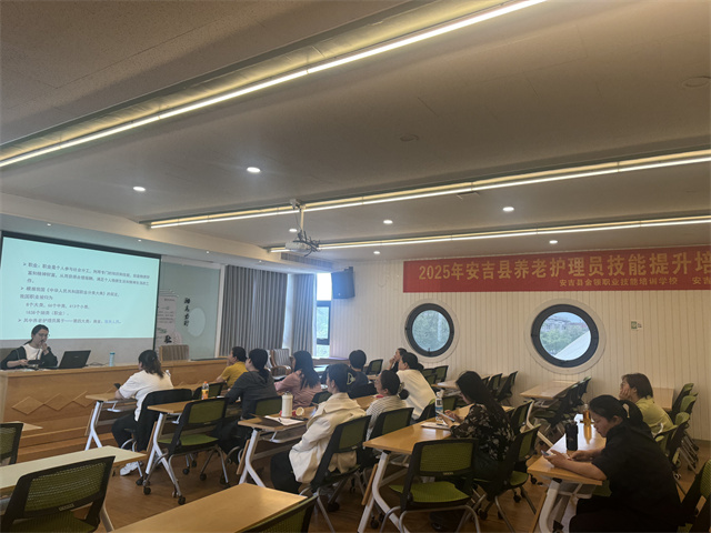 此次培训特别邀请到了安吉县人民医院具有多年临床经验的杜卫红医生担任授课讲师。杜医生长期深耕于老年医学领域,在老年人护理安全与应急处理方面有着深厚的专业积累。培训伊始,杜医生从老年人身体机能衰退的特点出发,详细阐述了在日常护理中诸如床铺高度调整、地面防滑处理、物品摆放位置等容易被忽视却至关重要的安全注意事项。她通过列举实际案例,让学员们深刻认识到这些细节对于预防老年人跌倒、烫伤等意外事故的重要性。