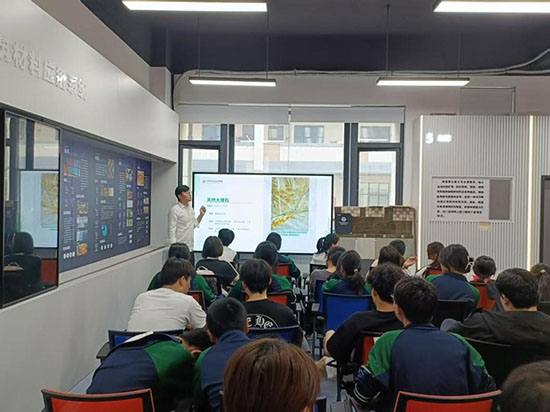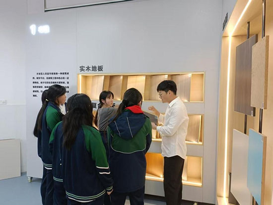 在数字材料展示中心,改变了传统了建筑装饰材料和构造课堂,教师结合样本与多媒体互动屏讲解材料的成分、用途、施工要点等知识,让学生们在实践中学习材料知识。学生们在展示区穿梭,通过观察、触摸、对比,直观了解不同材料的性能、特点和质感。在这里,学生们获取更多的设计灵感,也让设计作品更具可行性和创新性。