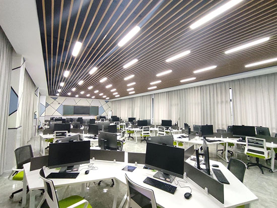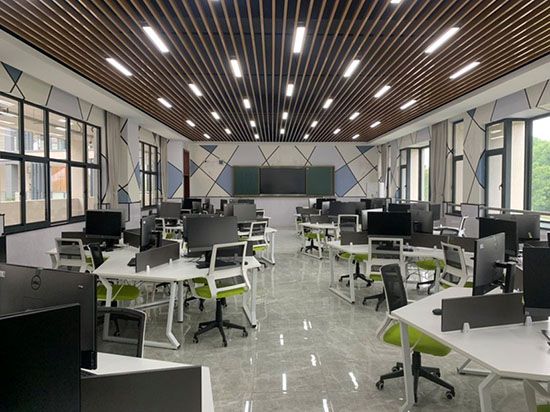 装饰施工虚拟仿真实训室是建筑装饰产业数字化转型背景下搭建的技能虚拟实践平台,它位于精进楼S202。这里拥有48台高配置的电脑,整体采用组团化的空间布局形式,配有虚拟仿真实训软件,构建覆盖"施工全周期、工艺全链条、岗位全角色"的数字化教学场景,通过虚拟技术手段,提升了整体教学效果,为他们未来的职业生涯打下坚实的基础。