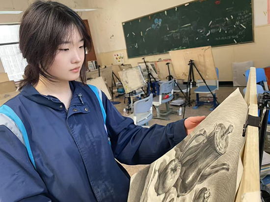 【华彩绽放】省赛颁奖台上,她的素描作品被评价为“会呼吸的静物”。铅笔构筑的陶罐里装着两年来的晨昏,衬布每一道褶皱都藏着不为人知的深夜。当镁光灯再次亮起,这次照亮的已是被汗水打磨过的钻石光芒——那些曾经让她跌倒的舞台,终究成了托起梦想的云梯。