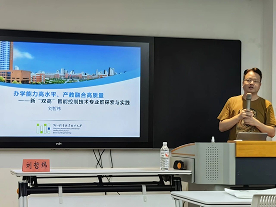 开班式后,浙江机电大学教务处长、教授刘哲纬带来了题为《高水平智能控制专业群建设的探索与实践》的专题讲座。刘哲纬教授结合浙江机电大学的实践经验,从专业群建设的背景、目标、路径等方面进行详细阐述。他指出,高水平专业群是职业教育服务产业发展的重要载体,需要打破传统专业壁垒,构建“岗课赛证”融通的课程体系。通过大量案例分析,刘哲纬教授生动展示了如何围绕区域产业需求,优化专业结构、整合教学资源,让在场干部对智能控制专业群的建设有了更清晰的思路和更深刻的认识。