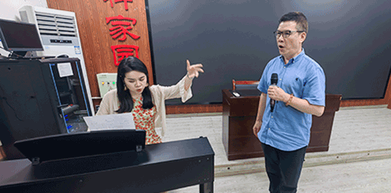 典礼尾声,学员林利平独唱《恰似你的温柔》,李建兴献唱《父亲》,全体学员与导师共同演绎了《乌兰巴托的夜》。悠扬旋律中,学员们以层次丰富的和声描绘出草原的壮美,用深情的演唱表达对家乡的挚爱。这首充满民族风情的作品,既集中展示了培训成效,也象征着学员们将以文化志愿者的新身份,为乡村振兴描绘更绚丽的色彩。