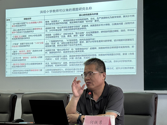 8月29日上午,诸暨市枫桥镇洪绶小学举行“2025学年第一学期枫桥镇课题撰写培训”,枫桥镇中心学校邀请了“浙江省特级教师、首批正高级教师、长三角地区教科研标兵”何铁勇前来作报告。