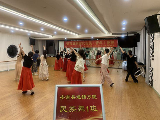 9月14日晚,安吉县社区教育学院递铺分院的舞蹈教室内灯火通明,乐声悠扬。31位来自不同行业的学员齐聚一堂,在专业舞蹈老师潘虹的带领下,沉浸于一场精彩纷呈的民族舞教学体验之中。