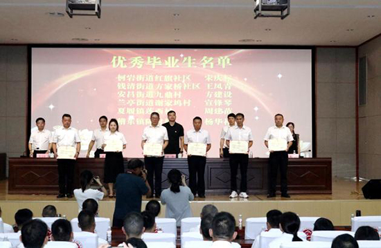随后,16位镇街学员代表分批上台领取证书,6位学员获评“校优秀毕业生”并接受表彰。