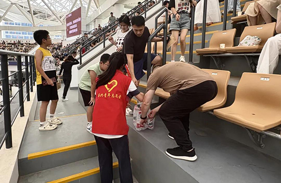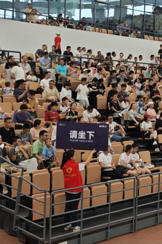 比赛开始后,志愿者们面对前来观赛的市民与外地游客,耐心引导检票、指引座位,用细致服务让观众感受到“家一般的温暖”。