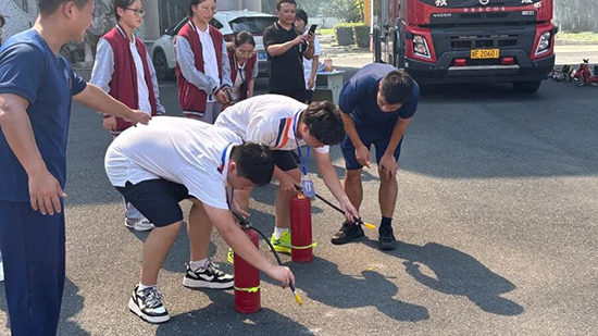 活动的最后,救援队员现场指导学生如何正确使用灭火器,并组织每位同学进行实操练习,确保大家能够真正掌握灭火器的使用方法。