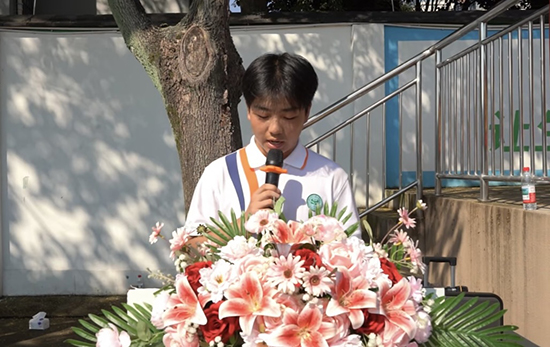 学生代表园林技术2501赵梓涵同学上台发言,他向倾心付出的校领导、悉心指导的教官和日夜陪伴的老师们致谢,并表示将在未来的高中学习生活中继续发扬军训中收获的刻苦精神,坚韧勇敢,奋勇拼搏。