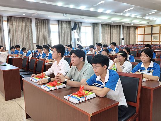 典礼特别设置了赠书环节,学校领导向24级仪陇班学生赠送了精心挑选的书籍,寄托了对同学们“好读书、读好书”的殷切期望。一本本图书传递的不仅是知识,更是对仪陇学子美好未来的期许。
