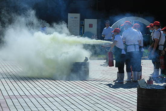 总结讲话后,活动进入第二阶段。在行政楼广场上,25级新生各班班长、义务消防队员及食堂员工齐聚一堂,参加灭火器使用实操培训。消防员们身着整齐的制服,精神抖擞地站在现场,他们一边详细讲解灭火器的正确使用方法,一边进行标准示范。从拔保险销到握喷管,从压把手到对准火源根部喷射,每一个步骤都讲解得清晰明了,演示得精准到位。师生们听得全神贯注,眼神中充满了对知识的渴望。随后,大家踊跃参与,纷纷拿起灭火器,亲手操作。在消防员的耐心指导下,师生们逐渐掌握了基本的灭火技能,脸上洋溢着自信和喜悦的笑容。这一刻,他们不再是消防知识的“旁观者”,而是成为了能够勇敢面对火灾的“守护者”。