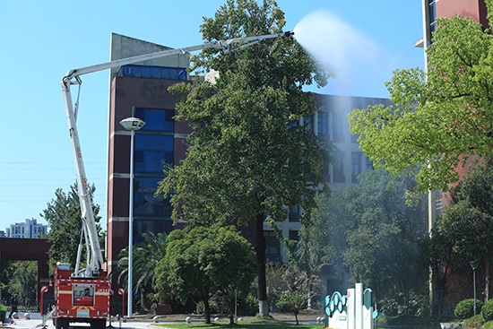 广场上,消防队员们还展示了消防作业车及登高救援设备,这些平时难得一见的“消防利器”吸引了众多师生的目光。消防队员们一边进行现场讲解,一边熟练地操作设备进行演示。他们详细介绍了消防作业车的功能和使用方法,以及登高救援设备在高层建筑救援中的重要作用。通过这种现场讲解与演示,同学们对消防救援装备有了更直观、更深入的认识,仿佛打开了一扇通往消防世界的大门。这不仅增强了消防安全知识的实践性,也让同学们深刻感受到了消防工作的艰辛和伟大。