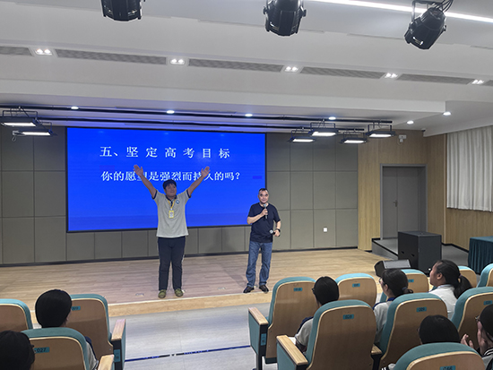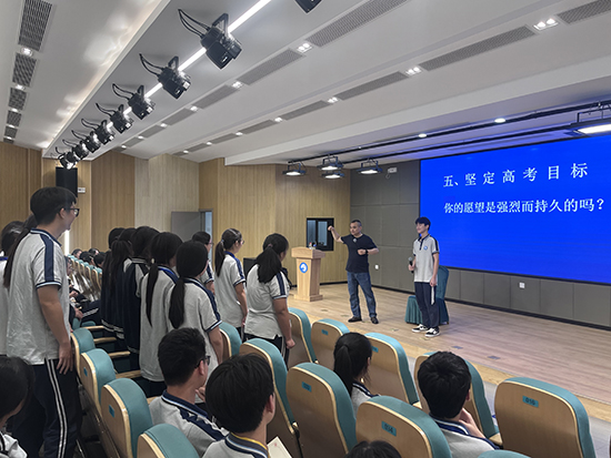 随后,徐跃斌老师带来“做最好的自己”的主题演说。他围绕“能力很重要,比能力更重要的是态度”“努力很重要,比努力更重要的是选择”“勤奋很重要,比勤奋更重要的是信念”“成功很重要,比成功更重要的是成长”“坚定高考目标,信念持久而强烈”等五个核心观点,结合真实案例深入浅出地讲解,为高三学子注入强劲心理动能。演说尾声,多名学生主动走上台,高声喊出自己的高职考目标,坚定的誓言感染了在场每一个人。