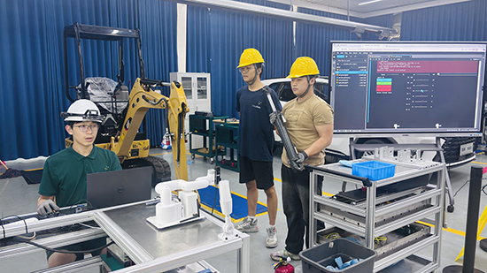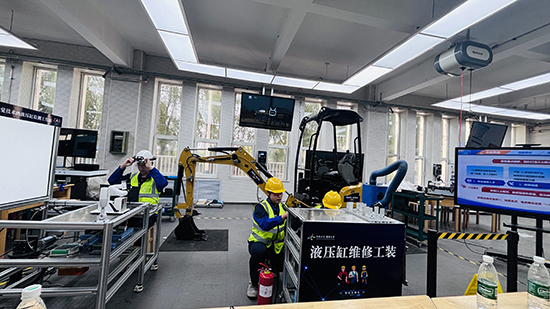 学校参赛作品紧扣国家绿色低碳与智能化核心战略,针对工程机械维修行业人才缺、故障检测难、维修效率低三大难题,精心设计了挖掘机巡检及液压缸检修技能展示主线。此项技能深度融合AR智能辅助巡检+AI视觉检测技术,自主研发液压缸拆装工艺,大幅提升巡检及检修效率。用真技术解决一线真难题,用硬实力诠释工匠精神,学校选手最终凭借出色的现场实操与清晰的项目讲解,赢得了评委的高度认可。