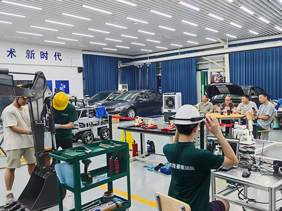 谈及备赛过程,孙航雨、葛建峰两位指导老师感慨万千。他们作为汽修专业教师,对于本赛道规定的岗位及技术领域都不擅长,经过反复研讨论证,最终确定将挖掘机作为技能展示的载体。为解决做什么、怎么做的难题,团队成员跑遍了宁波及周边地区的挖机维修企业,带领学生一起实践,深入了解挖机维修行业典型故障及难题,记录了200余条真实故障数据,从企业降本增效的角度出发,确定了展示的技能点。临近比赛时,因挖机太大无法进入比赛工位,又不得不更换小型挖机,重新编排展示流程。最终,大家靠着不放弃、不气馁的韧劲,一点点攻克难关,这份坚持比金牌更珍贵。