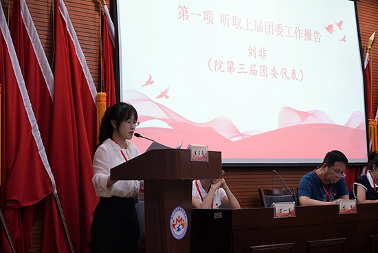 院团委书记刘非对新一届委员会如何扎实推进团代会各项工作作出表态:今后三年,学院共青团将按照学院党委和上级团组织的相关要求,更好地团结带领学院青年,瞄准学院共青团薄弱环节,围绕“服务青年、服务党政 ”两个基本点,按照有阵地、有队伍、有品牌“三有 ”标准 ,积极主动改革组织方式和工作方式,努力在组织青年、引导青年、服务青年和维护青年合法权益等方面奋发作为,努力在服务党政大局、服务学院发展、服务和谐社会方面争做贡献, 不断推动学院共青团干在实处、走在前列、勇立潮头。
