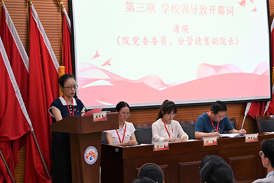 院党委委员、分管副院长唐瑛致开幕词,唐瑛副院长向与会人员表示热烈的欢迎和衷心的感谢,对临平学院青年们的努力付出表示肯定,希望新一届委员会成员能够以饱满的政治热情、认真负责的工作态度,不辜负广大团员青年的重托,砥砺前行,并预祝大会圆满成功。