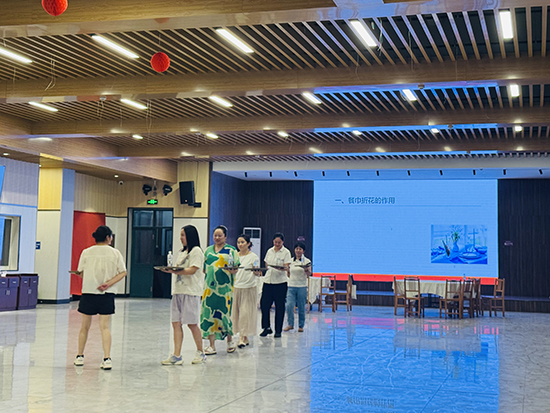 培训现场学习氛围热烈,学员们认真聆听讲解、反复练习实操,从规范持托、创意餐巾折花,到标准酒水斟倒、宴会摆台布置,每一项技能都在老师的专业指导下得到扎实提升。一名自谋职业学员表示:“这次培训非常实用,老师讲得细致深入,尤其是服务礼仪和客户沟通技巧等内容,让我对餐饮服务有了更深的理解,对以后找工作更有信心了。”另一位来自海宁万凯新材料股份有限公司的学员说:“没想到在家门口就能接受如此专业的培训,课程实操性强、内容新颖,让我受益匪浅!”