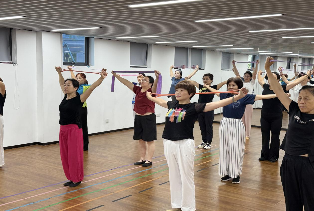 9 月 16 日,杭州滨江区西兴街道石门塘社区老年学堂舞蹈课秋季班正式开班,辖区老年居民踊跃参与。