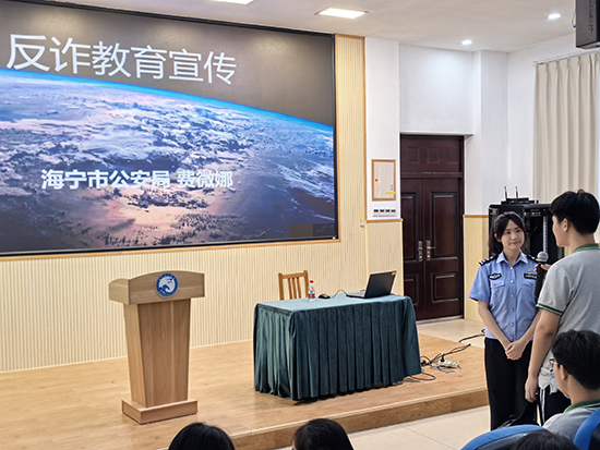 为进一步提高师生的防诈骗意识,9月17日,海宁卫生学校(海宁市综合高级中学)邀请海宁市公安局法制大队民警费微娜为全校师生开展了一场生动的反诈宣传讲座。讲座中,费警官结合真实案例,深入浅出地讲解了当前常见的诈骗手段及防范方法,课堂气氛热烈,学生参与积极性极高。