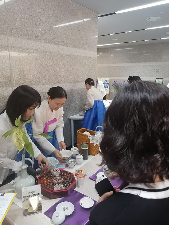 吴震老师自诩“茶的传译者”,访问韩国时,先在首尔拜会了与妙西有着不解之缘的韩国《茶的世界》崔锡焕社长,特意准备了载有《陆羽在浙江》专文的《陆羽茶文化研究》学刊及其副主编的《茶树栽培与茶园管护》教材、“爱奇葩·陆小羽”茶文创布艺产品、妙西霞幕茶和湖笔等,分赠韩国的友好人士,并在“韩中日茶学术研讨会”PPT茶图文演示收官环节,重点宣传、推介了杼山、妙西镇、西塞山旅游度假区和“东亚文化之都——茶生活品质之城”江南湖州。(曹炫芬、郎正凯)