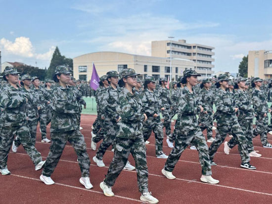 军训尾声,同学们肤色黝黑,眼神却愈发清亮。她们以整齐的分列式、昂扬的口号交出了圆满答卷。这段特殊经历,不仅锤炼了体魄、磨砺了心志,更让家国情怀与职业使命深植心中。