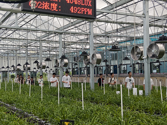 作为此次体验的收官站,同学们走进学校的漓渚校内实训基地。这座始建于1984年、依托“中国花木之乡”区位优势的基地,是国家级产学研综合实训基地,也是省级现代农业与园林绿化实训示范基地,素有“绍兴园林人才培养黄埔军校”之称。