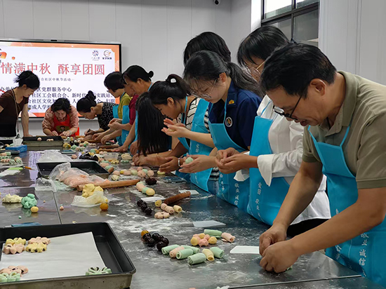 安全有保障,文化添温情。安全宣讲结束后,新碶街道社教中心百合分中心联动新碶成校,共同举办桃花酥手工制作活动。活动现场,百合社区文化加油站志愿者们手把手指导职工、居民们揉面、包馅、塑形,大家在揉制酥皮、点缀花纹的过程中交流互动,既体验了传统手工的乐趣,又增进了邻里与职工间的感情。面团的香气与欢声笑语交织,不仅营造了浓厚的节日氛围,更以文化活动为纽带,提升了辖区居民与职工的归属感和精神凝聚力。