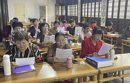 近日,柯桥成人文化技术学校携手梅陇社区与柯迎社区,共同启动 “唱红歌、热人心” 红色歌曲系列培训活动,特邀专业指导老师吴丹授课,吸引了 60 余位热爱音乐、心系红色文化的社区居民积极参与。