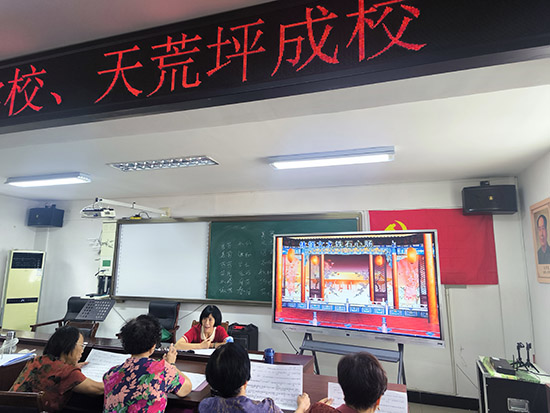王惠芬老师利用高清投影设备,将曲谱唱词、身段分解图实时投映至幕布。学员可同步对照唱腔节奏与情感表达要点,尤其对“休怪文龙铁石心肠”中复杂的情感转折进行逐句拆解。这种可视化教学显著提升了学习效率,一位银发学员感慨:“以前学唱靠‘口耳相传’,现在看屏幕就能掌握气口和韵律,连眼神细节都一目了然。”