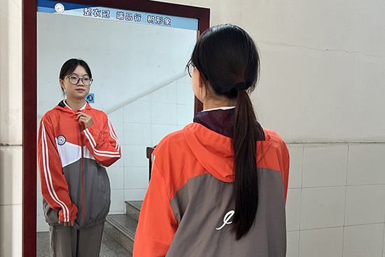 在教室镜前或与同学互检,从头到脚,审视细节,确保整体形象整洁、规范。