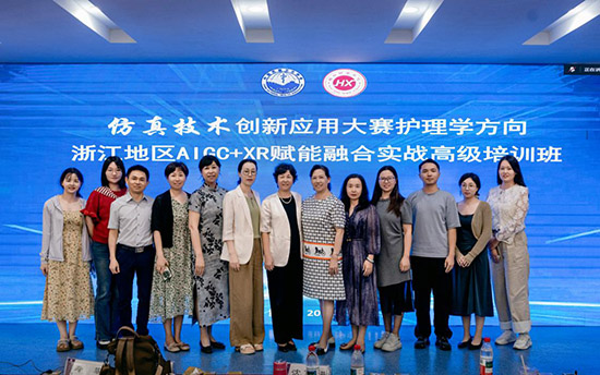 近日,仿真创新应用大赛护理学向浙江地区AIGC+XR赋能、融合实战高级培训在绍兴护士学校顺利召开,省内外十多家医院护理专家、十余家高校护理骨干教师、一家公司代表积极参会。本次会议聚焦人工智能生成内容(AIGC)与扩展现实(XR)技术在护理教育、临床培训及科研创新中的前沿应用,旨在推动技术融合,提升护理人才培养质量与专业实践水平。