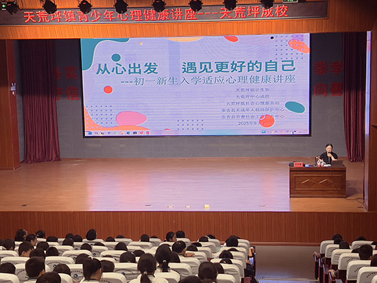 9月24日晚,安吉县社区教育学院天荒坪分院联合安吉县天荒坪镇社会心理服务站、计生协会、中学等共同组织的以“从心出发,遇见更好的自己”为主题的初一新生入学适应心理健康讲座在天荒坪镇山河村文化礼堂三楼报告厅举行,来自该镇180余名初一学生学生听取讲座。