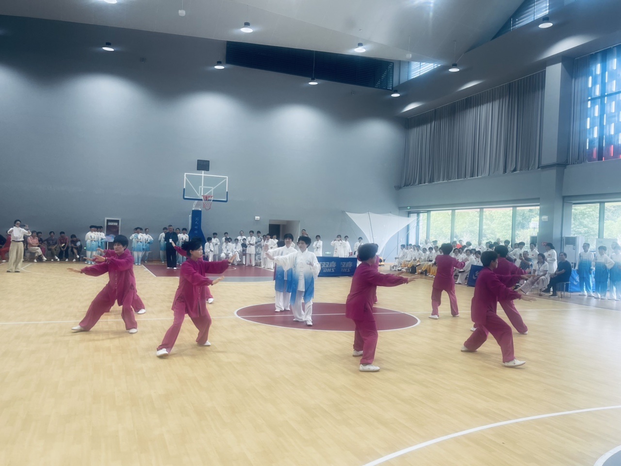 开幕式上,16支队伍共250余名队员集体展示八式太极拳,宏大的场面、恢宏的气势瞬间点燃现场气氛,引得观众纷纷拿起手机拍照记录。随后,各队伍依次登场,队员们身着各色太极拳服,在悠扬典雅的音乐伴奏下舒展身姿,动作刚柔相济、行云流水,将太极的韵味与魅力展现得淋漓尽致。其中,诸暨市基地队表现尤为亮眼,队员们娴熟的动作、从容的姿态以及灵活变换的阵型,赢得现场观众阵阵掌声。