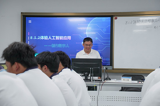 活动以 “实践展示 + 深度研讨 + 工作部署” 为主线,内容丰富且针对性强。公开课环节以 “同课异构” 形式拉开帷幕 —— 温州市第二职业中等专业学校的周文豪老师与温州市职业中等专业学校的郑方方老师,围绕同一教学主题“体验人工智能应用”同时开课,通过差异化的教学设计与教学方法,展现了对同一课程内容的多元解读与实践路径。两位老师风格各异却同样精彩的课堂,为现场教师提供了 “同一课题、不同教法” 的生动范例。