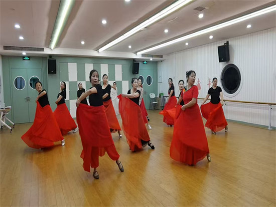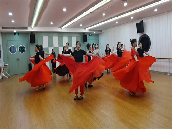 排练间隙,几位学员凑在一起交流心得,有人揉着微微发酸的肩膀,却笑着说:“虽然练得有点累,但一想到能在国庆前后跳出这支舞,就觉得特别有意义。”从生疏地记动作,到逐渐能跟上完整旋律,再到尝试用肢体语言传递对祖国的热爱,短短几晚的排练,不仅让大家的舞蹈水平有了提升,更让这份对祖国的祝福在反复练习中愈发真挚。