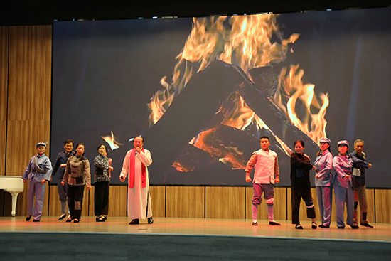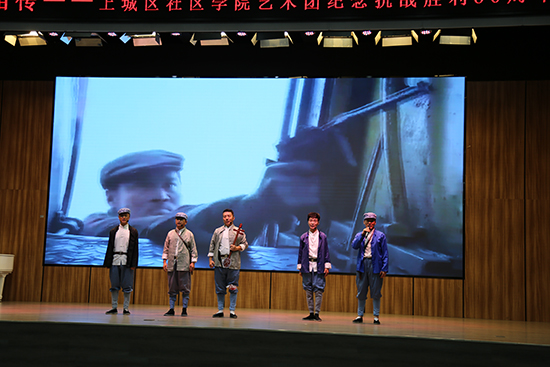 演出围绕“山河记”“英雄丰碑”“传承之路”三大篇章渐次展开。舞台上的银发表演者平均年龄65岁,却以饱满的热情,将烽火岁月中的故事一幕幕重现。
