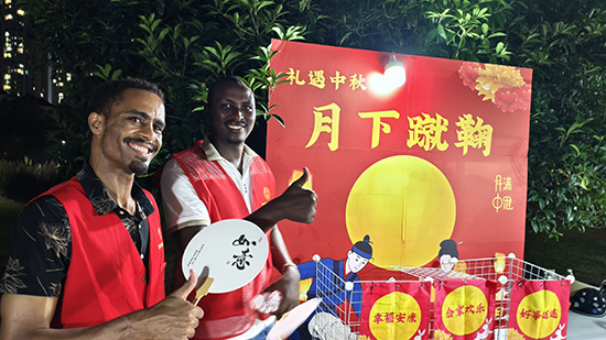 活动伊始,杭州杂技总团带来的精湛表演率先点燃全场热情,灵动技艺与绚丽舞台效果交织,引得现场掌声与欢呼声此起彼伏。随后,精心设计的趣味游园环节成为中外居民互动的“主阵地”:“海底捞月”的巧思、“投壶雅射”的雅致、月下蹴鞠的活力,让不同肤色的居民争相竞技,在沉浸式体验中感受古典礼乐之韵;猜灯谜时的共同思索、捏面人时的携手创作、品糖葫芦时的甜蜜分享,更让中华传统文化的魅力在互动协作中悄然传递,成为连接心灵的纽带。