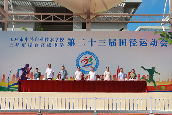 9月28日上午,玉环市中等职业技术学校、玉环市综合高中第二十三届田径运动会在全校师生的热切期盼中隆重开幕。学校领导、全体师生齐聚体育场,共同见证这一充满活力与激情的体育盛会。仪式由组委会副主任陈顺宇主持。