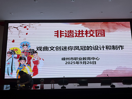 9月26日上午,嵊州市职业教育中心“非遗进校园”系列活动迎来了一场妙趣横生的文化盛宴。黄泽戏剧服装制作技艺非遗传承人、嵊州市工艺美术大师、“嵊州工匠”李松英女士莅临学校,以“针线间的华彩:戏曲服饰与文创迷你凤冠的匠心之旅” 为主题,为师生们带来了一场深入浅出、精彩纷呈的非遗文化分享。