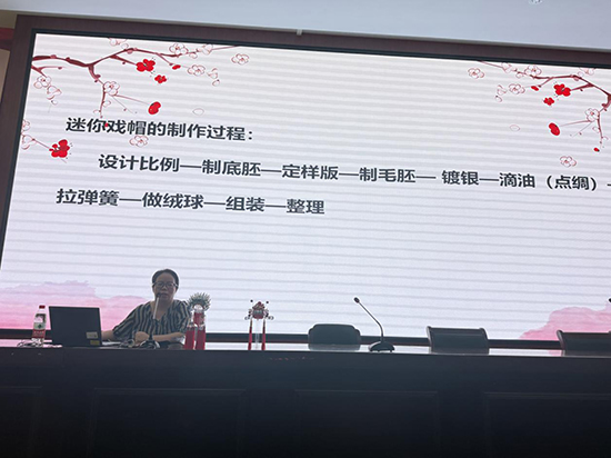 讲座的核心亮点,在于李大师对 “迷你凤冠” 这一创新文创产品的深度分享。她向大家生动展示了如何将舞台上那些庞大、华丽、属于帝王将相和后宫佳丽的凤冠,通过精巧的设计与精湛的技艺,微缩成一件件精美绝伦、可置于案头欣赏的文创珍品。从最初设计灵感的汲取,到材料的精心挑选,再到镶嵌等数十道复杂工序的简化与创新,李大师娓娓道来。她不仅展示了成品之美,更生动诠释了非遗技艺如何在坚守核心精髓的同时,通过创造性转化和创新性发展,巧妙融入现代审美与生活,使其焕发出崭新的生命力。
