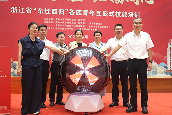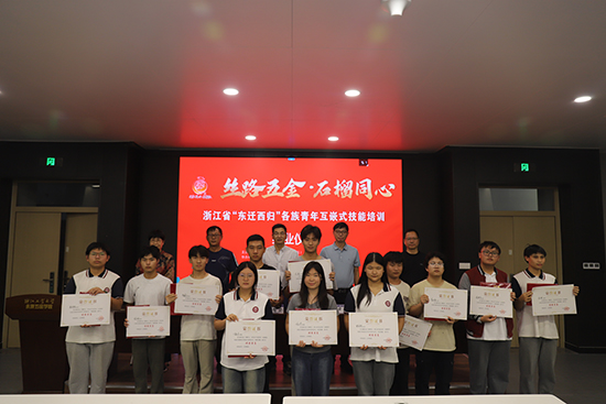 9 月24日至28日,“丝路五金·石榴同心”浙江省“东迁西归” 各族青年互嵌式技能培训活动在浙江永康成功举办。活动由金华市委统战部(民宗局)主办,永康五金技师学院、永康市职业技术学校承办,永康市委统战部(民宗局)、永康市教育局、永康市人力社保局、永康市中华职教社协办。来自云南怒江、贵州纳雍、四川平昌、浙江永康等地区的 110 名各族青年齐聚一堂,共同参加了为期五天的技能提升与文化交融之旅。本次培训深化了“东迁西归” 职教协作模式,进一步促进了各族青年交往交流交融,为东西部协同发展注入了新动能,共同铸牢中华民族共同体意识。