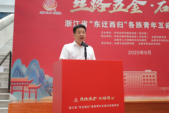 永康市委常委、统战部部长吴东明在开班仪式上致辞。他强调了本次技能培训活动对于深化东西部协作、加强民族团结、服务地方产业发展的重要意义。他勉励学员们珍惜机会,静心学习、积极实践,以技能成就梦想,努力成为新时代民族团结的“促进者”和共同富裕的“建设者”。